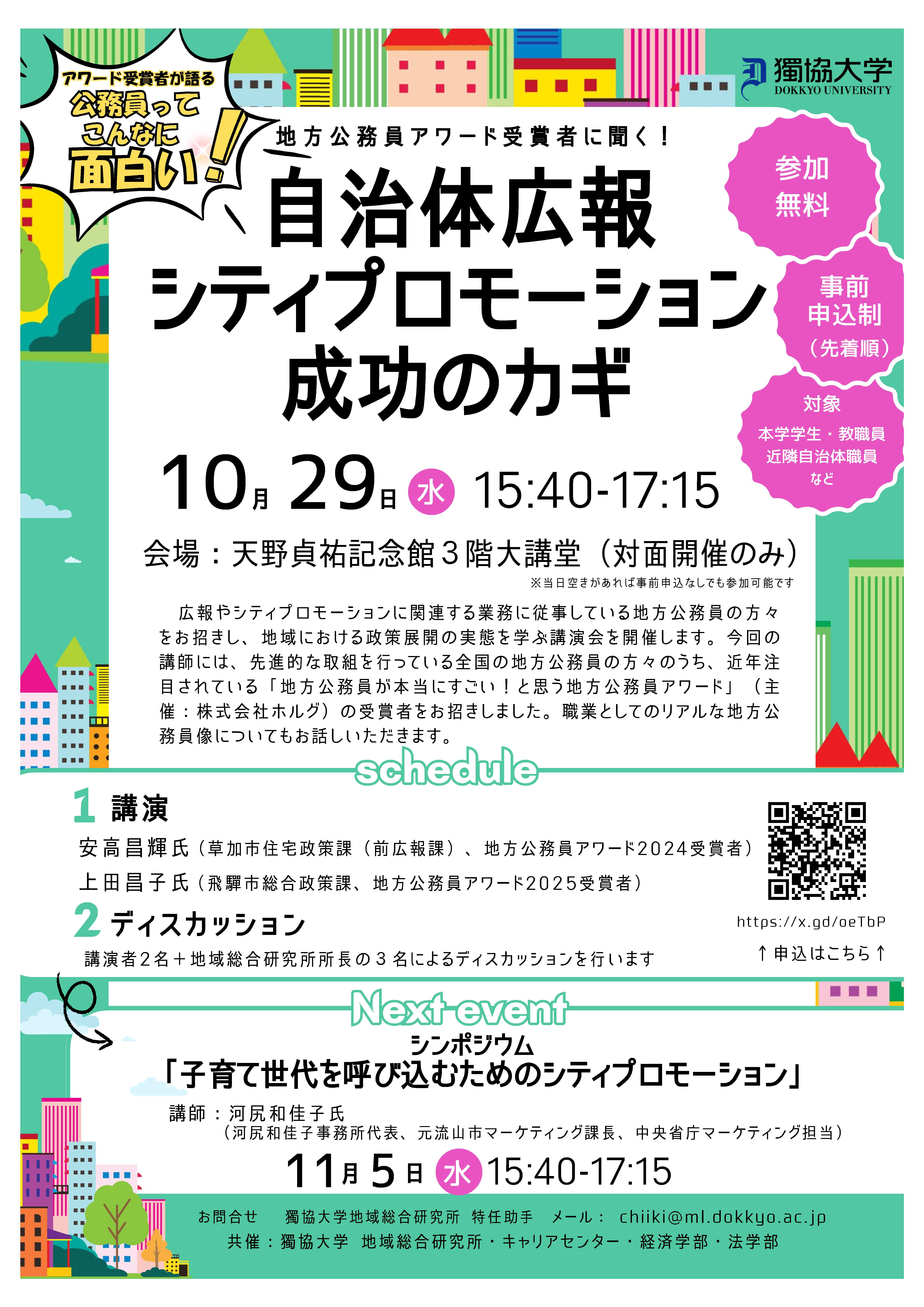 - 10月29日(水曜日)講演会「地方公務員アワード受賞者に聞く! 自治体広報・シティプロモーション成功のカギ」